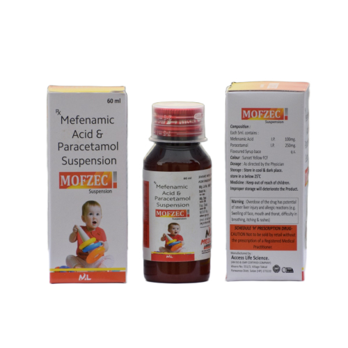 Mefenamic acid 50mg + Paracetamol 125mg. Syrup Mefenamic acid 100mg & Paracetamol 250mg Syrup