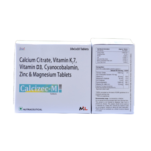Calcium Citrate 1000mg, Vitamin K27 50mcg, Magnesium Sulphate 50mg, Zinc 4mg, Cyanocobalamin 2.5mcg& Vitamin D3 10mcg